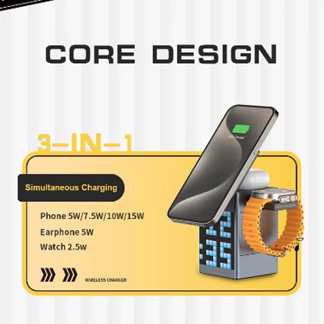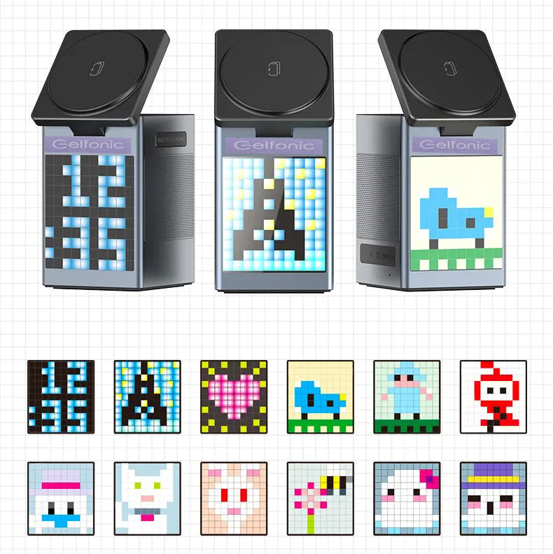 Celfonic Pixel Animation Speaker with Wireless Charger, Bluetooth, Alarm Clock, 6-in-1 Magnetic Stand